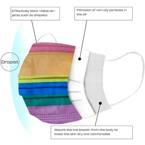 【UTILISATION LARGE: Gardez votre bouche et votre nez couverts et protégés de la pollution, des produits chimiques, des fluides et de la poussière, de la brume, de la fumée et des gaz d’échappement des automobiles avec ce pack économique de 50 pièces de masque facial jetable. Le lot de 50 masques faciaux à usage unique de couleurs assorties est suffisant pour répondre aux demandes de votre famille / personnel / amis.