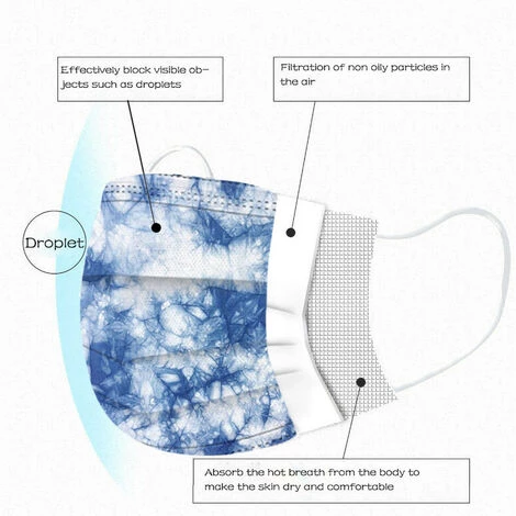 3 couches respirant : le masque facial est fabriqué avec un tissu non tissé de haute qualité à 3 couches , de filtration protectrice qui comprend un tissu non tissé à l’extérieur, un filtre en tissu soufflé par fusion au milieu et un tissu non tissé doux à l’intérieur, il a un effet filtrant plus fort et est plus doux et respirant.