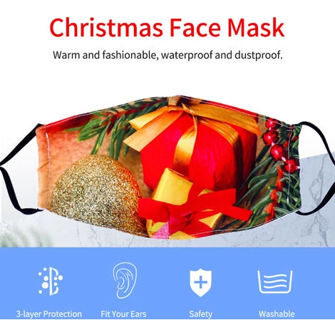 | Fonctionnalités: masque facial chaud et à la mode. 7 styles de Noël pour vous de choisir. protection 3-couche, extérieure est en polyester et coton, moyenne et interne sont en pur coton. Lavable et réutilisable. Protégez-vous de la poussière, le brouillard et la brume, fumée, échappement automobile, le pollen, etc. design contour d’oreille ajustable et élastique, facile à porter et adapter à différentes personnes et ne sera pas contrainte les oreilles, même après avoir porté le masque pendant une longue période. Convient pour une utilisation intérieure et extérieure. Il est un très beau cadeau pour votre famille et vos amis. Caractéristiques: Motif: n ° 4/5 # / # 16 / # 6/7 # / # 17 / # 15 (en option) Matière: Extérieur Polyester Coton, Moyen pur, pur coton intérieur Quantité: 1pc Sexe: Unisexe Age: Adulte Occasion: Accueil, extérieur, Bureau Point Taille: 14 * 11.5cm / 5.5 * 4.5in Poids de l’article: 13g / 0,5 oz Liste de colisage: 1 * Masque |