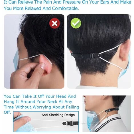 【Matériau de haute qualité】Ce Crochet pour Masque s’ajuste à taille de votre tête – La longueur de l’extension de masque peut être librement ajustée a toutes têtes entre 14CM et 21CM. L’Extenseur de Masque convient à la plupart des masques du marché,et a toutes personnes.L’Accroche Masque peut réduire efficacement le stress et inconfort de l’élastique derrière oreille.