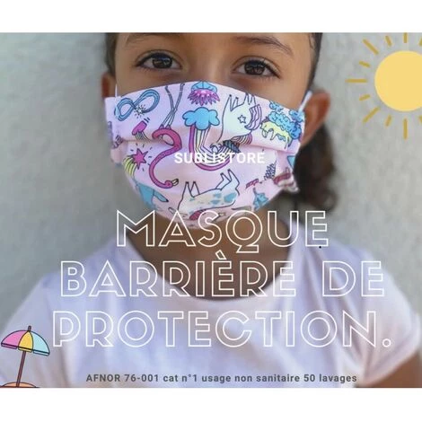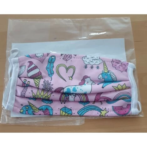 Masque en tissus Covid Licornes multicolores pour enfant jusqu’à 7ans – 50 lavages – origine Europe