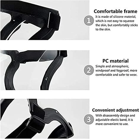 [FULL_MASK] Transparent, léger, confortable, respirant, comme des lunettes à branches repliables ! N’affecte ni le maquillage ni les cheveux ! Il est idéal pour protéger les yeux, la bouche et le nez des éclaboussures, des gouttelettes, des aérosols, des pulvérisations et des éclaboussures. [Réutilisable] La conception 3D place ce joint dans le masque pour améliorer les difficultés respiratoires. Les pare-soleil réutilisables sont une solution de protection pratique et portable. La visière peut être lavée à l’eau et au savon après chaque utilisation.【Largement utilisé】Masque entièrement transparent. Les lunettes compatibles couvrent vos yeux, votre nez et votre bouche. Gardez certains de ces masques de sécurité dans votre sac à dos, à la maison, au travail ou dans votre voiture. Utilisez-le à l’extérieur, dans la cuisine et au bureau pour protéger votre santé.