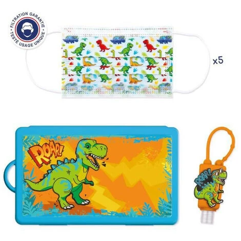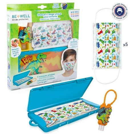 CANAL TOYS BE WELL Kit De Protection Dinosaure – Prévention Complet : Masques Jetables Pour Enfants 5-9 Ans, étui Et Porte-gel
