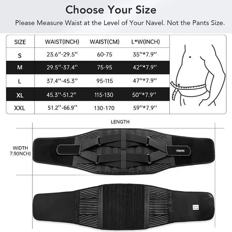 Support Professionnel : 6 Sangles de soutien, ciblant les régions lombaires de part et d’autre de la colonne vertébrale, soutiennent le dos sur une hauteur de 23 cm, avec un positionnement centré sur les vertèbres lombaires, fournissant un soutien professionnel complet pour la taille.