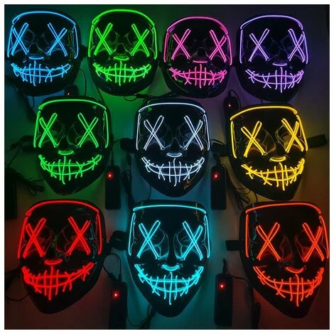 Le masque lumineux à LED convient pour Halloween, festival, cosplay, Halloween, costume, mascarade, fête, carnaval, cadeau.