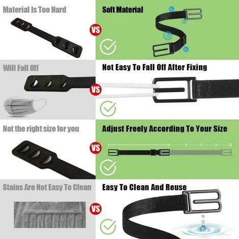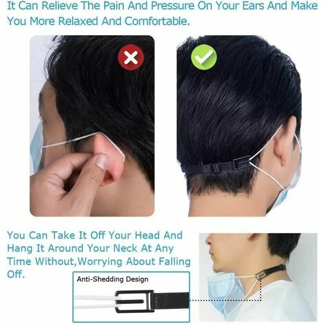 - 【Fonction de support】Lorsque vous avez besoin de vous reposer et de respirer, cet Attache Masque s’accroche à votre cou. évite la chute du masque. L’utilisation d’une accroche antichute aux deux extrémités de l’Extension de Masque vous permet d’effectuer facilement n’importe quel mouvement en toute tranquillité 【 lors du port du Masque】Conseil d’utilisation de cet Attache Masque. Accrochez Le fil du masque sur les boucles aux deux extrémités de la petite Sangle Masque; Positionnez-le sur votre tête; ajustez-le à la taille la plus confortable pour vous . 【Confortable】Doux et confortable L’Extenseur de Masque est fait d’un tissu hautement élastique, doux, confortable, respirant. Il s’adapte parfaitement à la tête et la longueur peut être ajustée pour convenir à toute la famille .