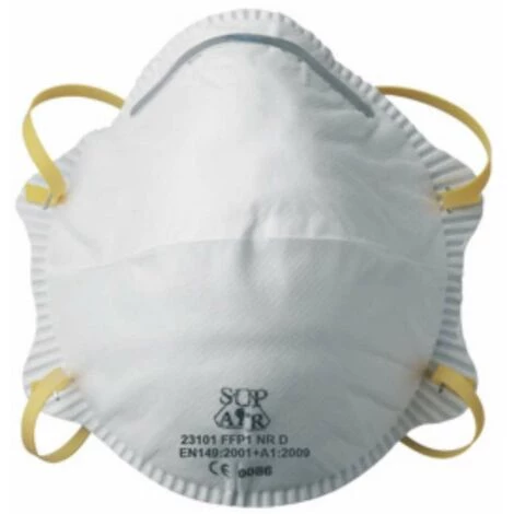 Description détaillée du produit: Produit: Masque poussière – aérosol FFP1 Univers: bricolage Matière: polyester / polypropylène SMS Coloris: blanc Caractéristiques: Masque forme coque / Elastique caoutchouc synthétique / Vision parfaite / Barrette nasale réglable Conditionnement: 3 ou 20 pièces Marque: Coverguard