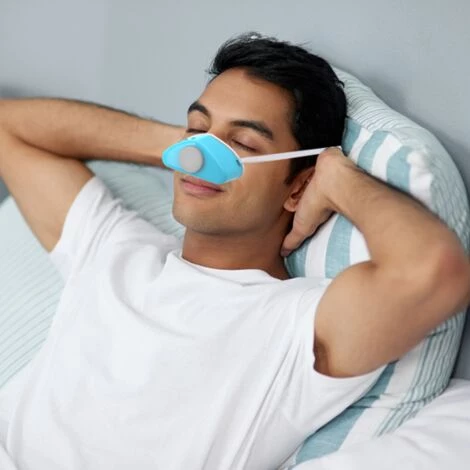 Le dispositif anti-ronflement fonctionne sur batterie, donc pas besoin de fils d’alimentation. Il n’a pas non plus besoin d’être fourré dans le nez, il suffit de le couvrir sur le nez et de le fixer avec une sangle en silicone, vous pourrez alors profiter