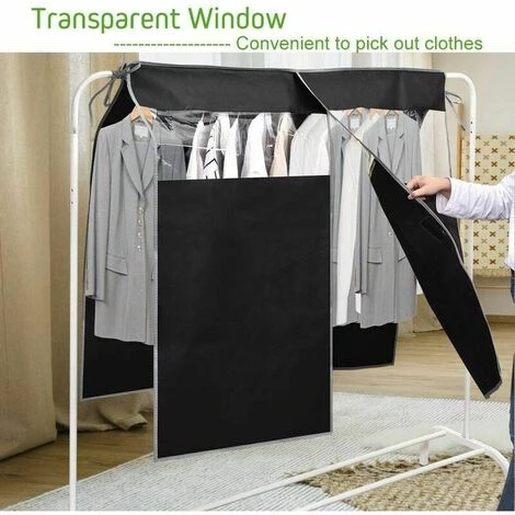 La fermeture du cache anti-poussière est un ruban magique, collez fermement, vous pouvez facilement rechercher et sortir les vêtements. Grande housse de protection pour porte-vêtements.