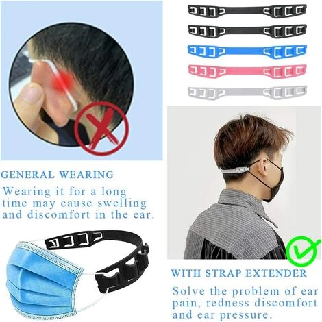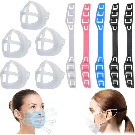 Emballage inclus: 5 pièces d’extension de sangle de protection faciale + 5 pièces de support intérieur de visage 3D