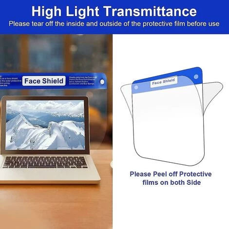 Environment Friendly & Premium Quality Nous insistons toujours sur l’utilisation de matriaux haut de gamme pour produire des produits de meilleure qualit. Cet cran facial est fabriqu en PET (polythylne trphtalate) impermable recyclable pour isoler efficacement la salive et protger compltement le visage des sprays, des claboussures, des gouttes, de la poussire, de lhuile, de la fume et etc.