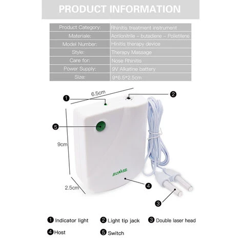 NETTOYER LA CAVITÉ NASALE — Le dispositif de traitement de la rhinite peut nettoyer les capillaires de la cavité nasale et soulager les symptômes de l’inflammation nasale, de l’enflure et de la congestion nasale.