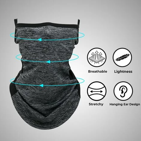 Tissu Super élastique, il ne sera pas facile de le porter. Conception de suspension d’oreille, la longueur est modérée et douce, elle ne blessera pas vos oreilles.La surface du bandana est recouverte de trous d’air, ce qui a une bonne transpiration et respirabilité, il n’y a pas de sensation collante, il sèche rapidement et garde votre tête au sec en été.UPF50 +, bloquer efficacement les rayons nocifs UV et prévenir les coups de soleil. Et le matériau sèche rapidement, vous pouvez garder votre corps à température fraîche.Description:1.Les masques faciaux bandana sont fabriqués en tissu élastique doux et respirant, ce qui vous permet de vous sentir à l’aise et de mieux respirer l’air frais en été.2.La surface du bandana est recouverte d’aérations, elle peut rapidement évaporer la sueur et ne pas être étouffante.3.Le tissu extensible dans les 4 sens est très doux et proche de votre peau. Il absorbe rapidement la sueur, la répand rapidement, que tout autre masque facial.4.La conception suspendue à l’oreille le rend plus pratique à porter, pas facile à glisser, proche du visage et un grand confort de port.Détails du produit:Matière: polyester, spandexCouleur: 5 couleurs (comme le montre la photo)Genre: unisexe, hommes, femmesSaison: printemps, été, automne, hiverTaille: taille unique (13cm * 32cm)Emballage Inclus:1 pièce de masque Bandana