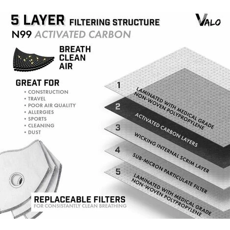RÉUTILISABLE ET LAVABLE: La coque et les valves du M anti-poussière en filet peuvent être lavées lorsqu’elles sont sales, le filtre est facilement remplaçable, vous pouvez les remplacer par une autre nouvelle valve et filtrer le coton par vous-même.