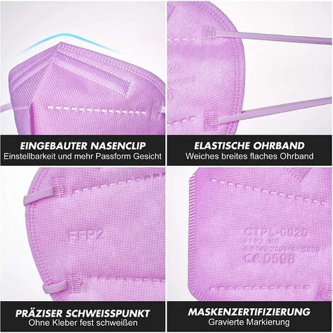 Les masques FFP2 sont composés de 5 couches de matériaux à haute filtration: couche extérieure non tissée + 3 couches filtrantes à fibres douces ultra-fines + couche intérieure non tissée respectueuse de la peau. Il est respirant et confortable. Répondez à la norme FFP2 avec une efficacité de filtre supérieure à 95%.