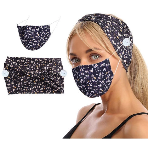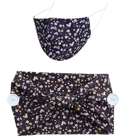 HAPPYSHOPPING Vente Chaude Bouton Creatif Large Bandeau Hiver Masque En Tissu Anti-poussiere Bandeau En Deux Pieces, Petites Fleurs