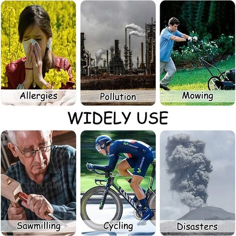 « couleur comme indiquéTaille: 20 x 20 x 3 cmPoids :80gCONCEPTION PARFAITE: De nouvelles améliorations pour la pollution implémentent la conception du contour d’oreille empêchant la face anti-poussière de glisser. La sangle HOOK & LOOP et le clip nasal réglable offrent une étanchéité personnalisée et empêchent la formation de buée.MATÉRIAUX MIEUX AVANCÉS: La pollution est en nylon qui offre une excellente perméabilité. Filtre en fibre de carbone plus épais et plein la couche filtrante plus propre et hygiénique. La face aérienne légère est confortable, respirante et agréable à porter par temps chaud.MEILLEURE PROTECTION: La face anti-poussière filtre 99% des gaz d’échappement, de la poussière, des produits chimiques, des particules, du pollen, de la fumée et des vapeurs. Le anti-poussière peut être utilisé pour l’anti-poussière, les gaz d’échappement des véhicules, les allergies au pollen, les PM2,5 et la protection contre la brume. Il convient au cyclisme, à la course à pied, au vélo, à la randonnée, au ski, au travail du bois et à d’autres activités de plein air.RÉUTILISABLE ET LAVABLE: La coque et les valves de la poussière de maille M peuvent être lavées lorsqu’elles sont sales, le filtre est facile à remplacer, vous pouvez les remplacer par une autre nouvelle valve et filtre en coton par vous-même.ACHETEZ EN TOUTE CONFIANCE: Notre produit est largement utilisé pour les allergies au pollen, la course à pied, le cyclisme, les activités de plein air, le travail du bois et les travaux de construction, également bon à utiliser comme tonte et peinture dans les projets d’amélioration de la maison. »