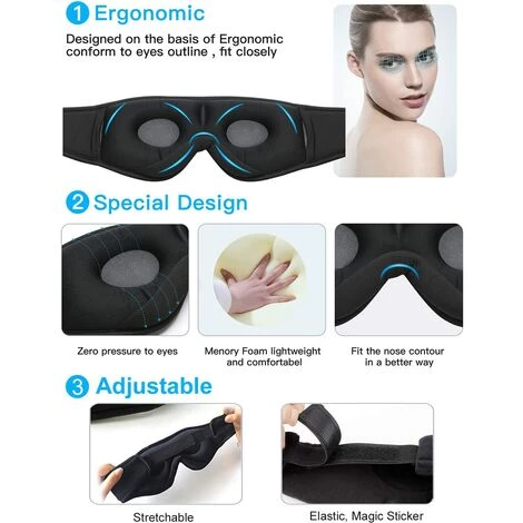 Bloquez parfaitement la lumière : le masque de sommeil Bluetooth pour casque de sommeil a une couverture complète et est conçu de manière unique pour la zone du nez, bloquant efficacement la lumière. d’entrer, empêcher les fuites de lumière. Bloquer la lumière pour améliorer votre sommeil, vous permet d’écouter de la musique sans porter d’écouteurs supplémentaires, ce qui vous permet de vous endormir plus rapidement. Bénéficiez des avantages d’une occultation totale, que ce soit à la maison, à l’hôtel ou dans l’avion.