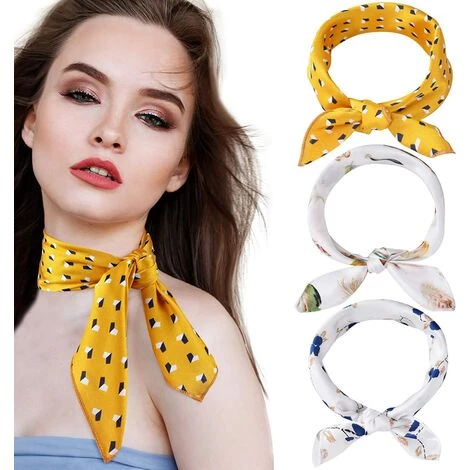 【Design chic & Convient pour diverses occasions : les 3 ou 4 écharpes emballées sont conçues avec des imprimés floraux, à pois et à rayures, tous sont les éléments les plus récents et les plus tendance, ce qui peut rendre votre look plus attrayant. Lorsque vous allez à une fête ou sur le point de montez sur scène pour vous montrer, et même pour un costume quotidien, ce foulard en soie imprimée serait un bel embellissement.