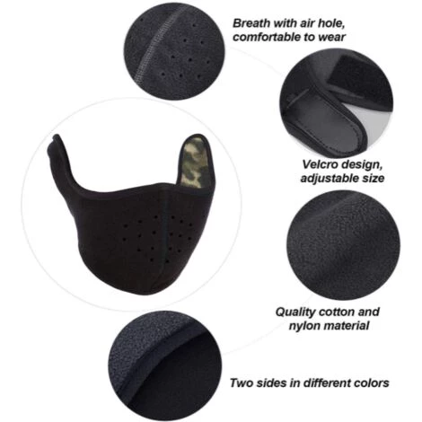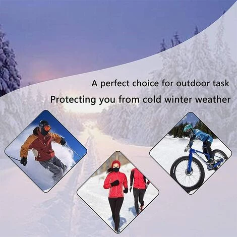 Une taille qui convient à tous, car ils se fixent à l’arrière avec du velcro. Vous pouvez ajuster la taille grâce à des attaches rapides, convenant à la plupart des gens, Unisex WarmMatériau souple: En tissu super doux et extensible, confortable et coupe-vent. doux au toucher, léger et durableConception de trous respirants: Nous concevons des bouches d’aération dans le nez pour résister à la chaleur, assurer une respiration en douceur et vous permettre de toujours respirer de l’air frais. peut vous garder au chaud par temps froid et protéger votre peau délicate du visageApplications larges: Idéal pour le ski, le snowboard, l’alpinisme, l’escalade, la moto, la course à pied, la randonnée et bien d’autres activités en plein air. Idéal pour les activités en intérieur et en extérieurSpécifcationNom du produit:Masque d’hiverMatière: coton et nylonTaille: env. 64 cm de long, 16 cm de largeConception ergonomiqueMasque auriculaire deux en un. Il est épais et garde les oreilles et le visage au chaud. doux au toucher, léger et durable. Nez parfait, contour du visage, oreilles, pas facile à glisser. La conception de la boucle adhésive peut être ajustée pour augmenter la flexibilité de l’ajustement. Il convient à toutes les formes de visage.Forfait inclus:1 x masque coupe-vent