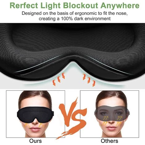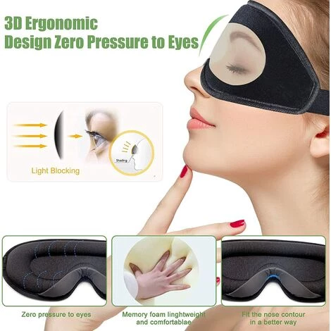 【Doux, Confortable, Respirant】- Le masque pour yeux est fait de tissu de haute qualité en de coton à mémoire de rebond lent, ce qui vous rendront confortable. Il est plus large et plus profond que masque traditionnel. Le matériau doux vous permet plus détendu sans pression sur votre visage pour garantir que le confort de vos yeux et peau après de nombreuses heures.l’aise.