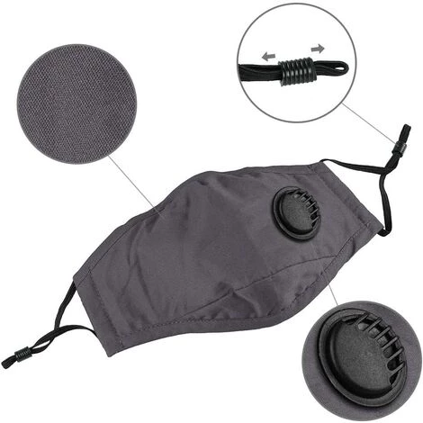 Conception efficace à trois couches avec vannes de filtre. Notre masque de coton est conçu avec une conception à 3 couches avec un sac filtrant garantit que la bouche / le nez est complètement scellée. La soupape de sécurité facilite la respiration et augmente la ventilation pour éviter l’accumulation de chaleur et d’humidité. La valve aide également à prévenir la fixation de la vapeur.