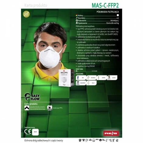 Masque masque demi-masque ffp2 protection caoutchouc_x000D_Demi-masque anti-poussière._x000D_Type FFP2 : protection contre les aérosols liquides ou solides non toxiques ou modérément toxiques (par exemple les brouillards d’huile) dans des concentrations de 12,5xOEL ou 10xAPF (NDS)_x000D_mettre des élastiques_x000D_boucle métallique au niveau du nez sur la partie extérieure du masque_x000D_mousse coussin protège le nez contre les ecchymoses_x000D_demi-masque ovale_x000D_protection idéale contre la poussière et la fumée métallique, les particules fines, les brouillards d’huile et l’ozone_x000D_utilisé pour le traitement du bois et du métal, le meulage et la peinture_x000D_demi-masque aux propriétés anti-smog_x000D_placé dans une boîte qui permet une présentation pratique à l’exposition_x000D_conforme à la norme EN149_x000D_Propriétés_x000D_plaque nasale spéciale pour un ajustement facile : masque FFP2_x000D_Le produit est recommandé pour les industries_x000D_Opérateurs de travail des métaux et de machines et d’appareils ou