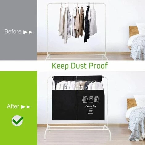 La fermeture du cache anti-poussière est un ruban magique, collez fermement, vous pouvez facilement rechercher et sortir les vêtements. Grande housse de protection pour porte-vêtements.