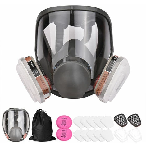 Kit 18 en 1 : 1 x couvre-visage intégral, 2 x filtres en coton ronds 2091, 2 x boîtes à filtres, 2 x couvercles en plastique, 10 x filtres en coton, 1 x sac de rangement.