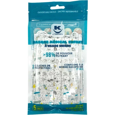 Nom du produit : 5 masques médicaux 3 plis jetables