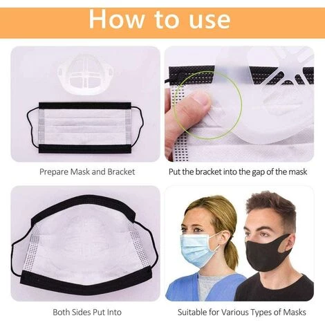 - Plus d’espace pour respirer: il maintient le tissu du masque autour de la bouche pour créer plus d’espace pour respirer lorsqu’un masque est placé sur le visage.