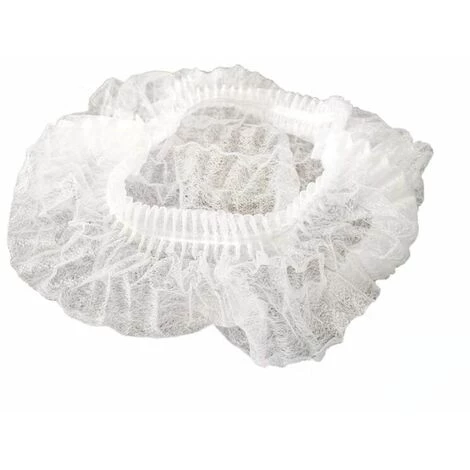 Sachet de 100 charlottes de protection jetables blanches pour cheveux. À usage unique, sans entretien ni lavage, facile et pratique pour une hygiène parfaite. Casquette anti poussière, couleur au choix (Blanc).