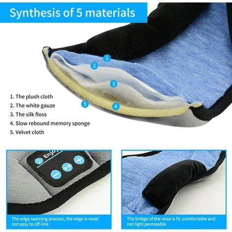 - ?Matière confortable et respirante et lavable? La protection oculaire Music Bluetooth est faite d’elvet et de coton élastique et offre une sensation douce et agréable. L’insert en tissu séparé de la couture n’est pas défectueux, c’est l’endroit pour retirer le module bluetooth afin que vous puissiez laver complètement le masque pour les yeux. Lors du nettoyage, vous n’avez pas à vous soucier de sa déformation ou de son rétrécissement.
