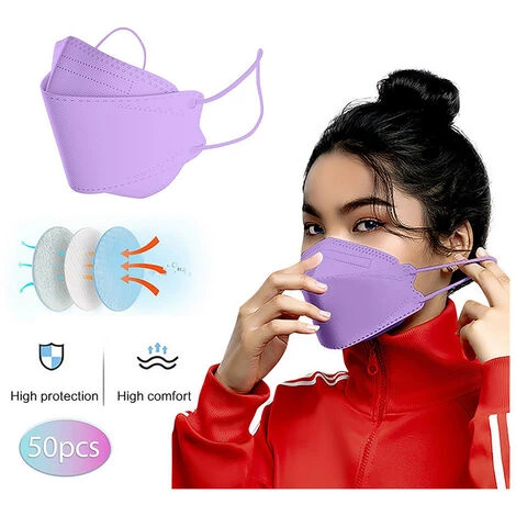 Masque facial 4 plis : les masques jetables sont fabriqués en tissu non tissé, deux couches de tissu de défense et une couche de coton électrostatique. La forme de poisson 3D est plus respirante et confortable à porter.
