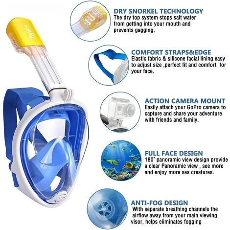 ★ Plein Visage : le masque snorkel vous permet de respirer naturellement par le nez et par la bouche sous l’eau.