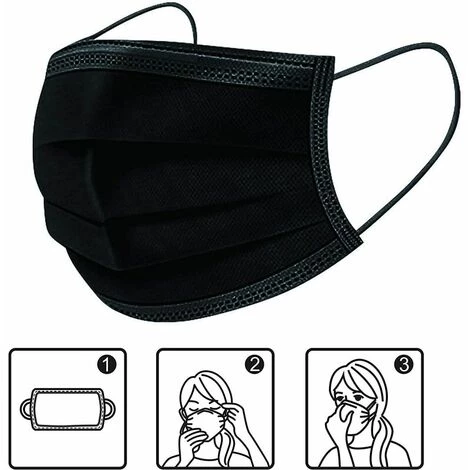 LUCKY-88 Masque Facial Jetable 3 Couches Adulte Noir 3 Couches BFE99 Meltblown