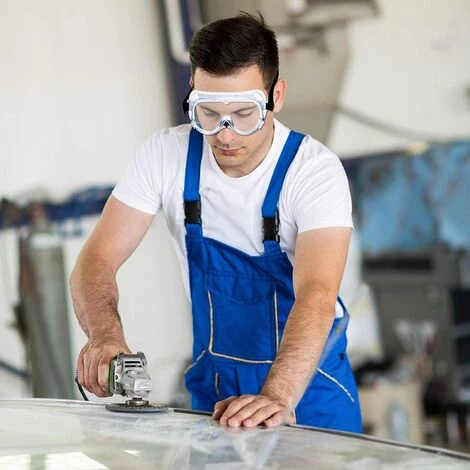 Réduit efficacement la poussière et les éclaboussures Peut être porté avec d’autres équipements de protection tels que masque, casque ou casque de protection et protection auditive.