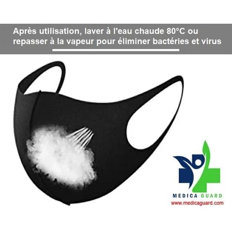 Lot de 3 adulte + enfants : 1 masque adulte noir + 2 masques enfants rose et bleu