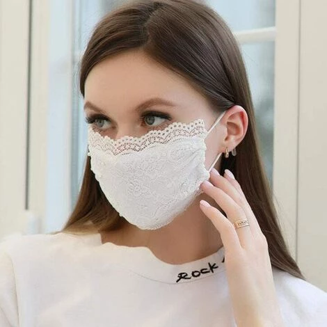 MEZHENG Masque Facial En Dentelle Anti-poussière Réutilisable Avec Perles Réglables Pour Femme Et Fille