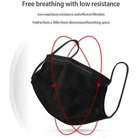 MEZHENG Protection Personnelle Noire De Filtre Jetable De Visage De 3 Plis 100 Pièces