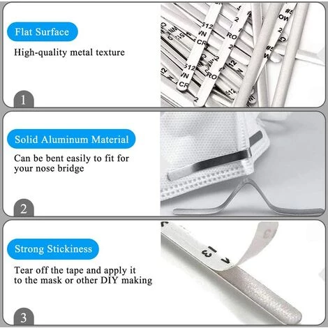2. Adhérence flexible et forte: avec un support adhésif, offre une forte adhérence qui ne tombe pas facilement. Le fil de nez en aluminium a les excellentes propriétés de flexion
