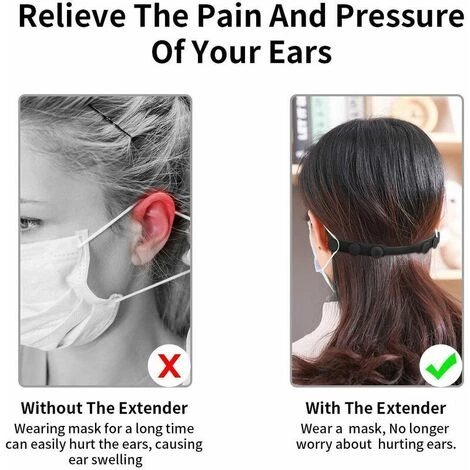 【Soulage la Douleur Auriculaire】 – Le crochet de la courroie d’oreille du masque est compatible avec la plupart des oreillettes du marché et soulage les oreilles de la pression et de la fatigue.