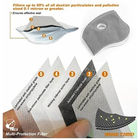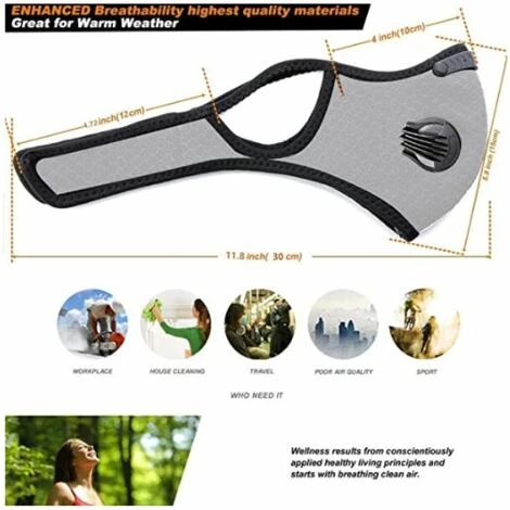 Protection totale : le filtre à 5 couches élimine les particules non grasses et la poussière de l’air. Idéal pour la course, le vélo et d’autres activités de plein air.