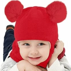 ILOVEMILAN Bonnet D’hiver Bébé Coupe-vent Chaud Tricoté Bonnet Enfant écharpe Rouge