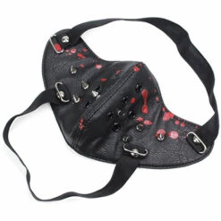 ZHUOXUAN Masque Gothique Masque En Cuir Rivet Demi Masque Halloween Costume Cosplay,Rouge Noir