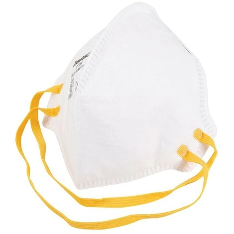 Masque protecteur FFP1 NR. Offre une protection contre les poussières fines, fibres non toxiques et brouillards aqueux jusqu’à un facteur 4. Usage unique. Conforme à la norme EN149:2001+A1:2009.