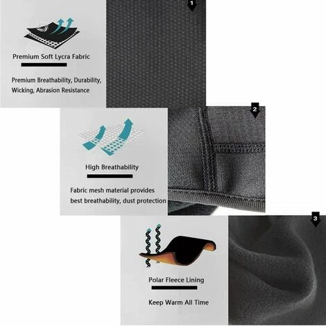 Imperméable & Coupe-vent – Le tissu en lycra doux de haute qualité offre des performances maximales en termes de respirabilité, de durabilité, dévacuation de lhumidité et de résistance à labrasion. Ils viennent en extra doux et léger et pliable et lavable. Samuser Respirabilité élevée – La doublure en polaire offre un maximum de chaleur. Le tissu en mesh offre la meilleure respirabilité et protection contre la poussière. br>Protection MaX – Nouveau design: cou extra long à lavant et fermeture à glissière à larrière pour une meilleure protection contre le vent et leau. La protection du haut de la poitrine, même des épaules à la tête, ne laisse aucune fenêtre pour le vent et leau??Samuser?? Application – Ski, moto, course à pied, cyclisme, randonnée, alpinisme, snowboard, paintball Airsoft, chasse, entra?nement tactique, cyclisme et autres activités de plein air – Le masque pour le visage est con?u pour durer toute une vie. Si vous avez des problèmes ou avez des questions sur votre masque facial , contactez-nous et vous obtiendrez une réponse rapidement. Tissu Le tissu en lycra doux de qualité supérieure offre une performance maximale. Léger, portable et lavable Respirabilité Matière en tissu pour une meilleure respirabilité, protection contre la poussière, volatilité de la transpiration à temps pour éviter lhumidité et le froid, et aucune odeur. Conception plus longue Le nouveau design du cou plus long et extra-long à lavant confère une meilleure protection contre le vent et leau. Protection du haut de la poitrine, même des épaules jusquà la tête, ne laisse aucune fenêtre pour le vent et leau Fermeture éclair Ajuster le masque, donnez une protection complète pour le dos et les épaules. évitez toute blessure. Couture transparente protégée du vent et de leau. Matériau réfléchissant 3M Caractéristiques – Imperméable – Coupe-vent – Protection Max – Respirabilité Premium – Tissu extra doux – Large application – Fermeture éclair réfléchissante Contenu du paquet : Masque coupe-vent et filtrer Matériau:polyester Couleur: noir Poids: 123g Taille: 42 * 27mm