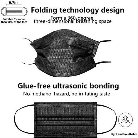 3 couches de protection : nos masques filtrants de haute qualité garantissent une barrière physique contre la fumée, les gouttes, la saleté, la poussière et la poudre. Avec le nouveau design à 3 couches, il peut aider à bloquer la pollution afin que vous puissiez respirer facilement et en toute sécurité dans n’importe quel environnement.