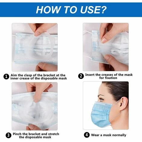 Attention: si vous ne le tenez pas contre votre bouche, veuillez utiliser du ruban adhésif double face ou du fil pour fixer le cadre en silicone au masque pour qu’il fonctionne mieux.