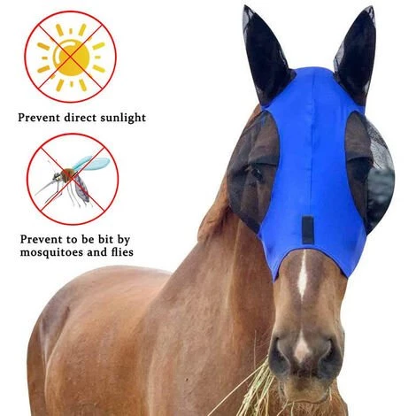 Facile à porter: le masque de cheval couvre le cheval de face à l’oreille.Il a une bonne capacité d’étirement et n’irrite pas le cheval.